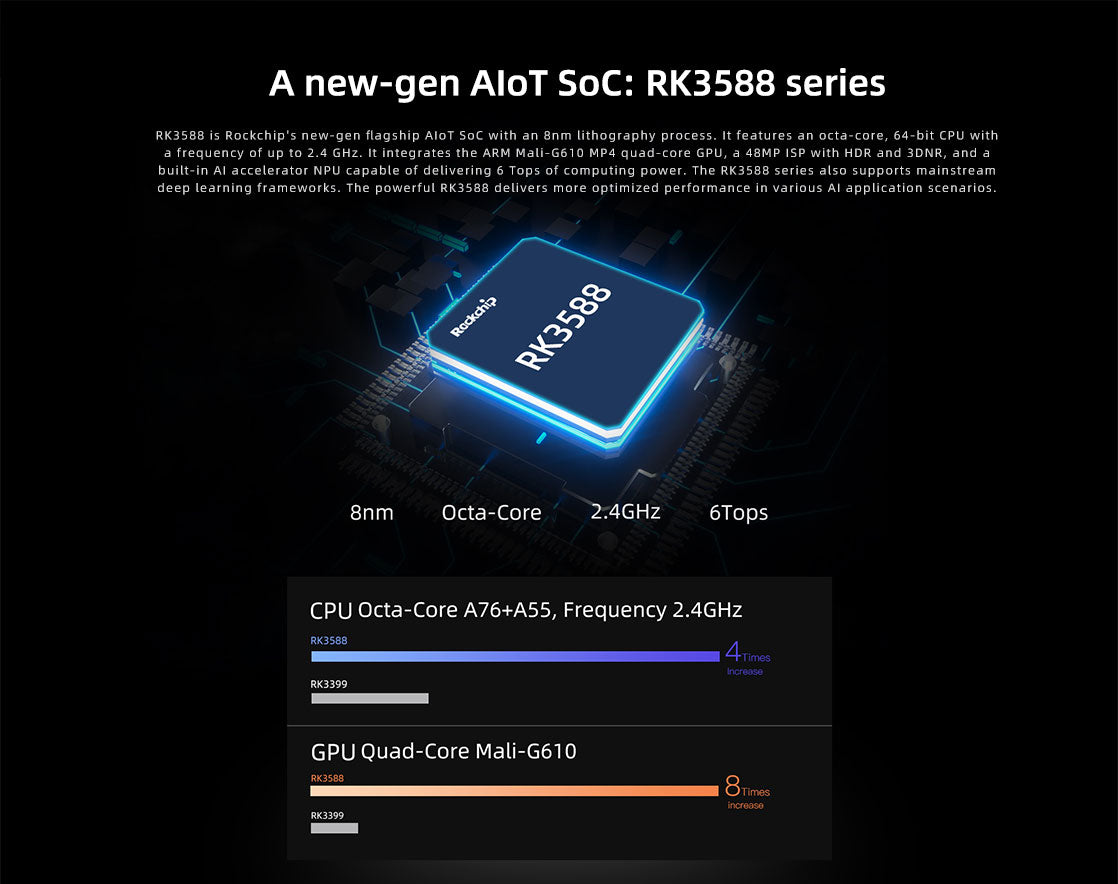 RK3588 Octa-core 64-bit (4*Cortex-A76+4*Cortex-A55) Up to 2.4GHz |
