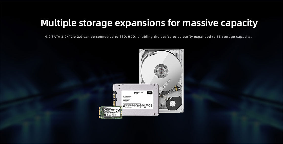 SATA 3.0 / PCIe 2.0 2242 SSD expansion (M.2) 1 * TF Card |