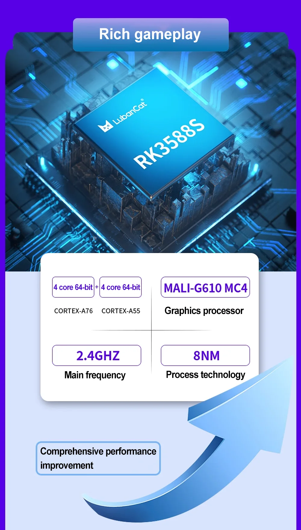 RK3588S (quad-core A76+quad-core A55, Mali-G610, 6T computing power) |