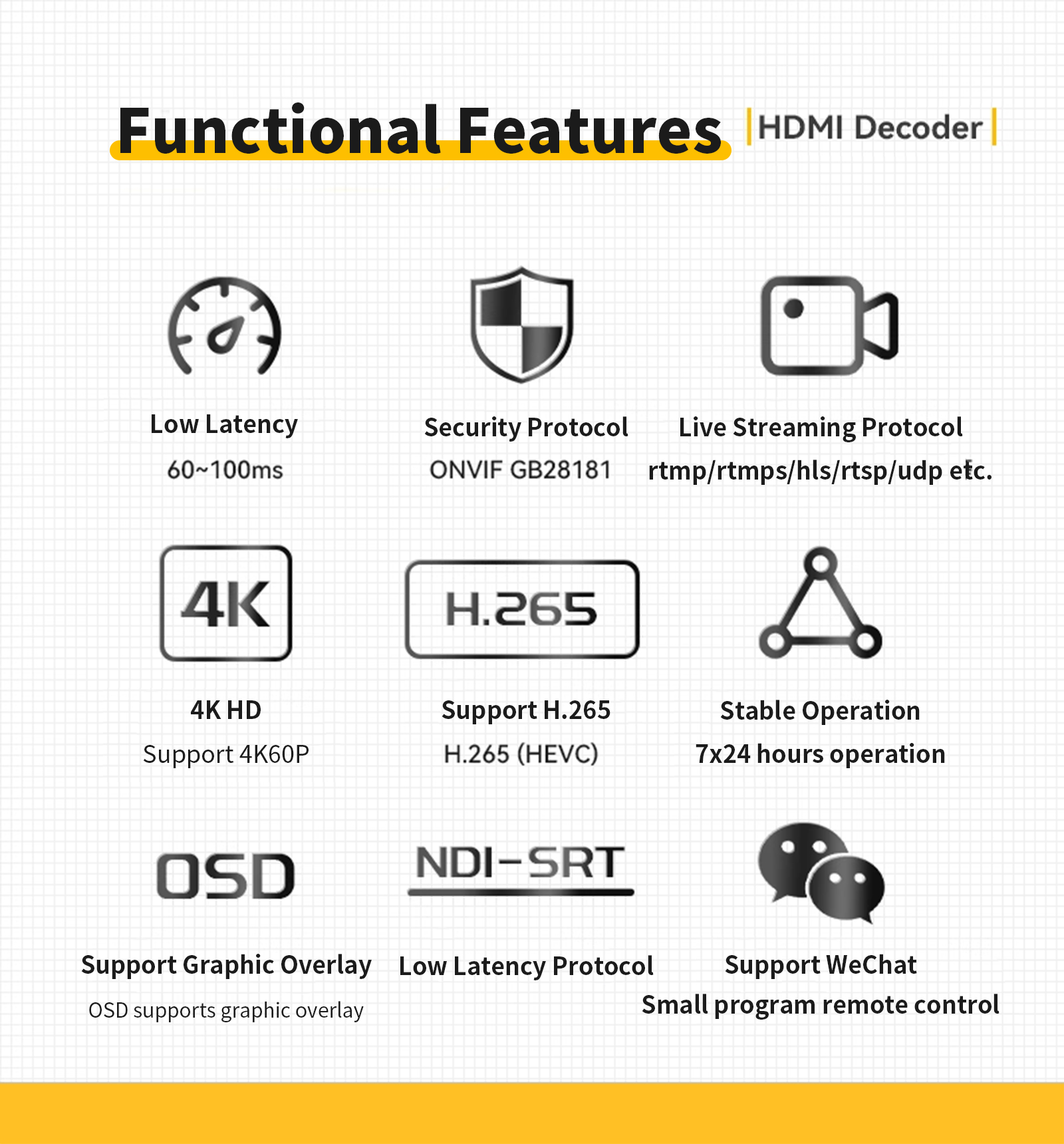 - Built-in support for the SRT (Secure Reliable Transport) protocol ensures reliable video transmission even under unstable network conditions.