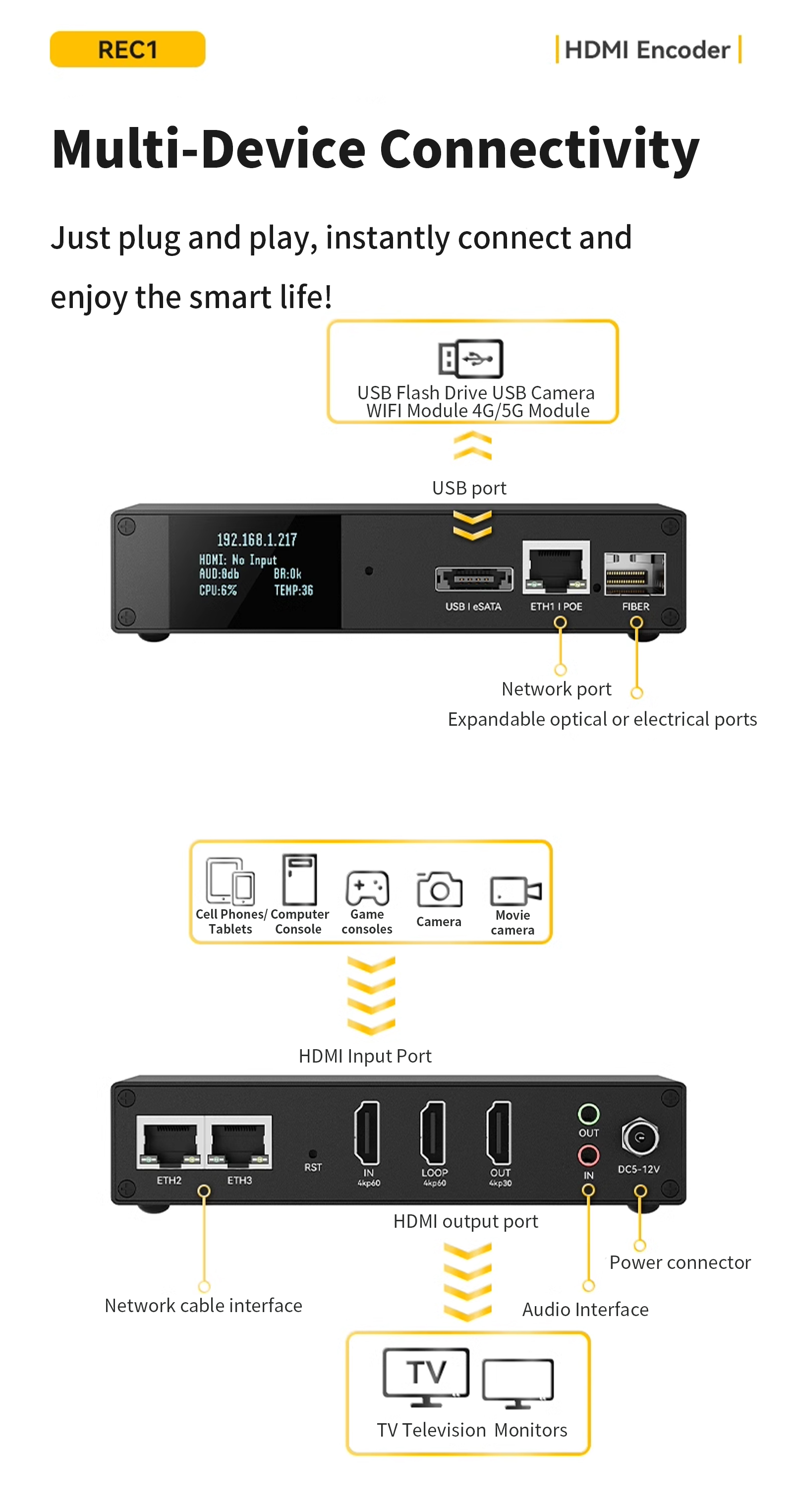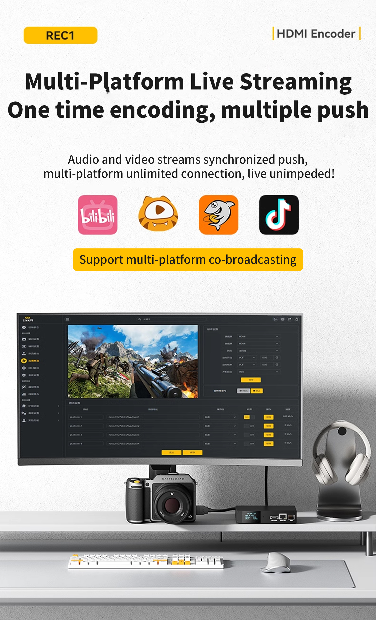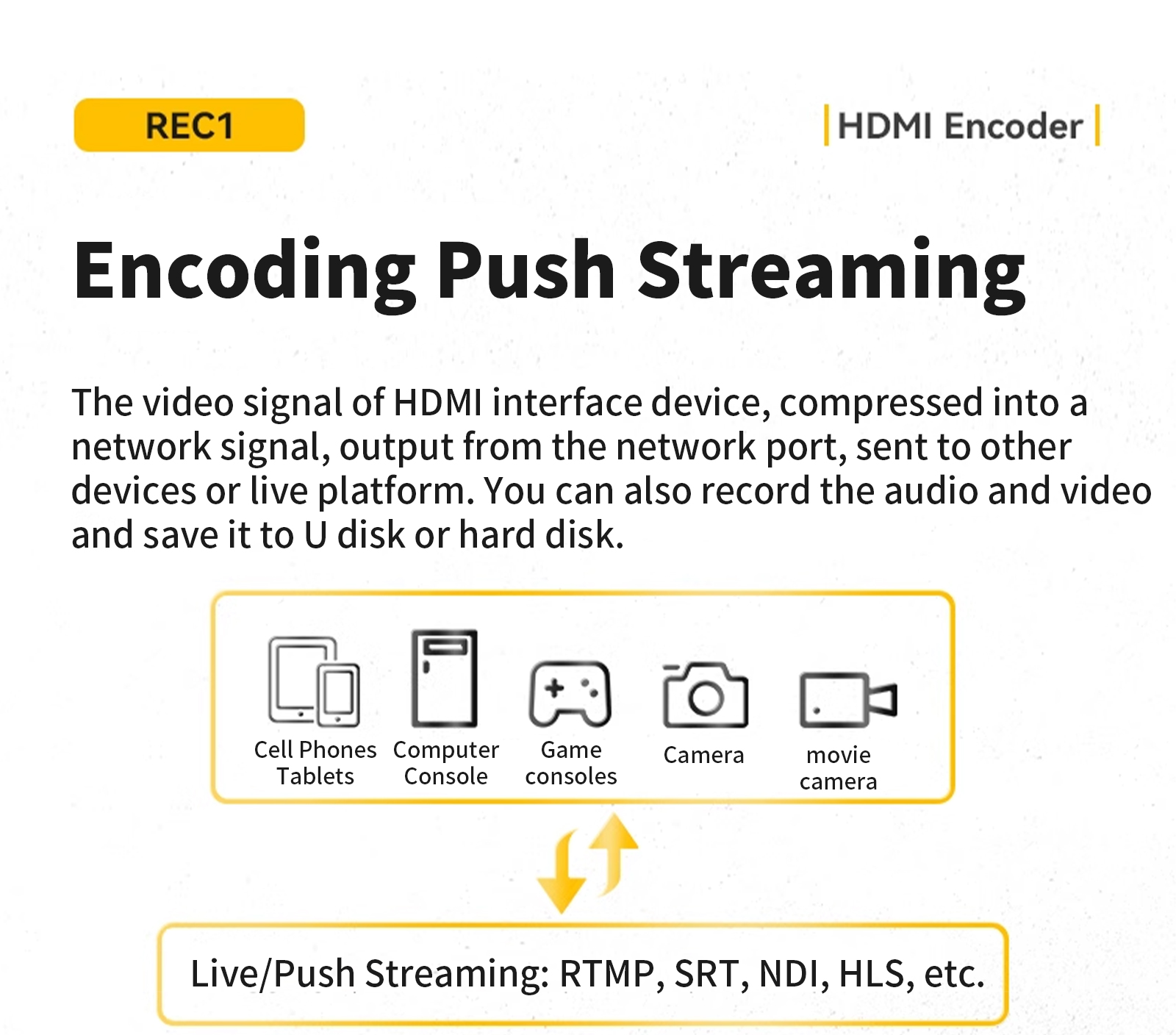Linkpi REC1- HDMI Screen Recorder Encoder 4KP60 Decoder SRT NDI GB28181