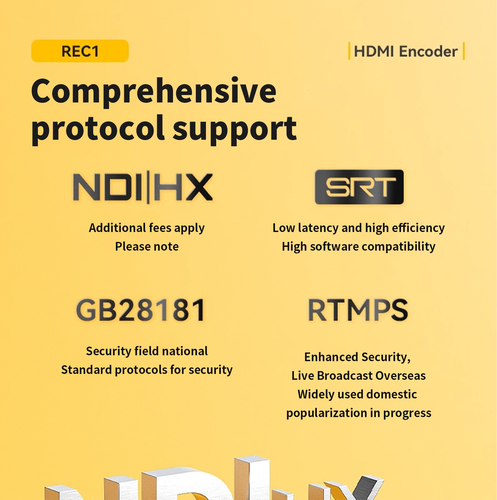 - Supports the NDI (Network Device Interface) protocol.