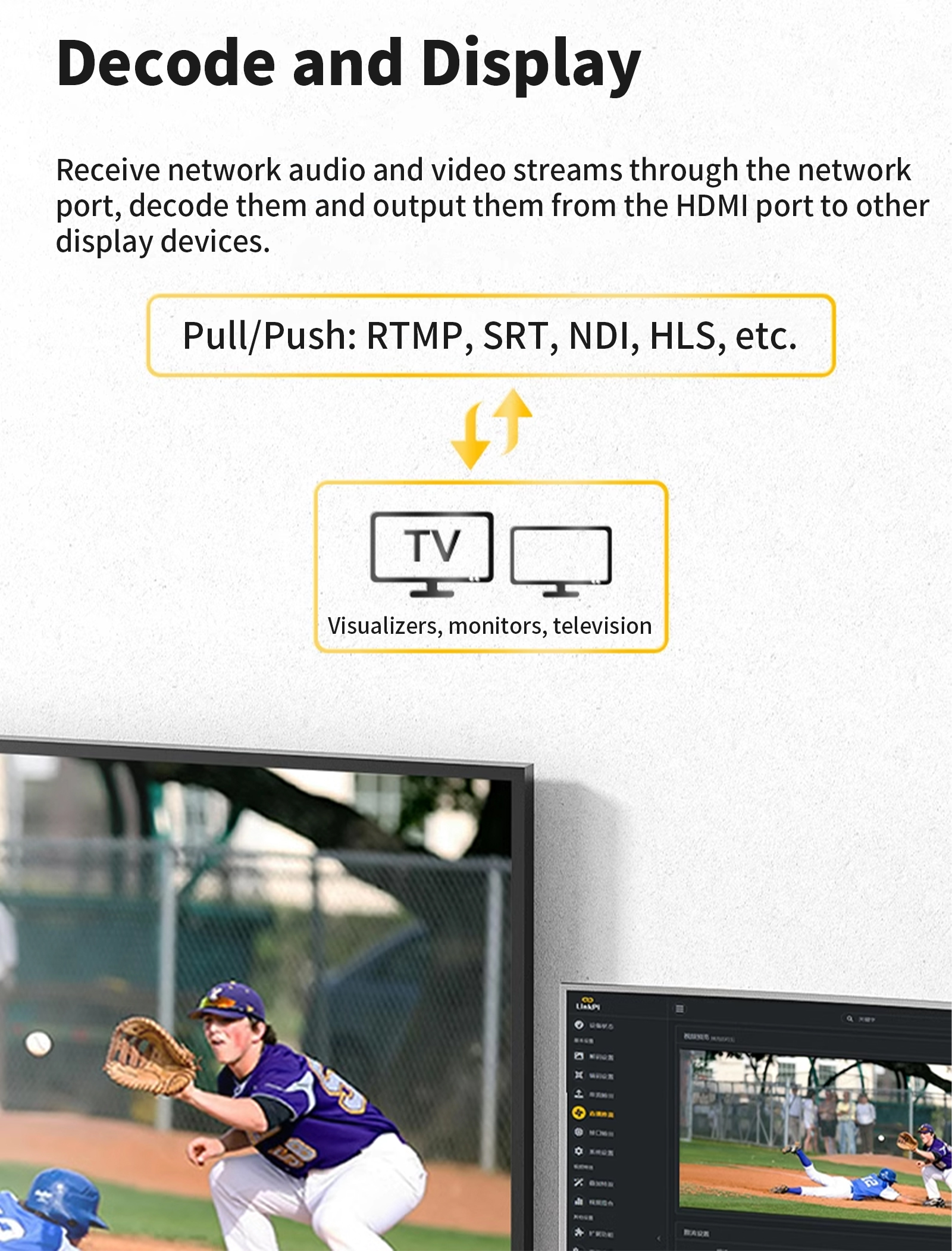 - It is equipped with two independent HDMI decoding capabilities.