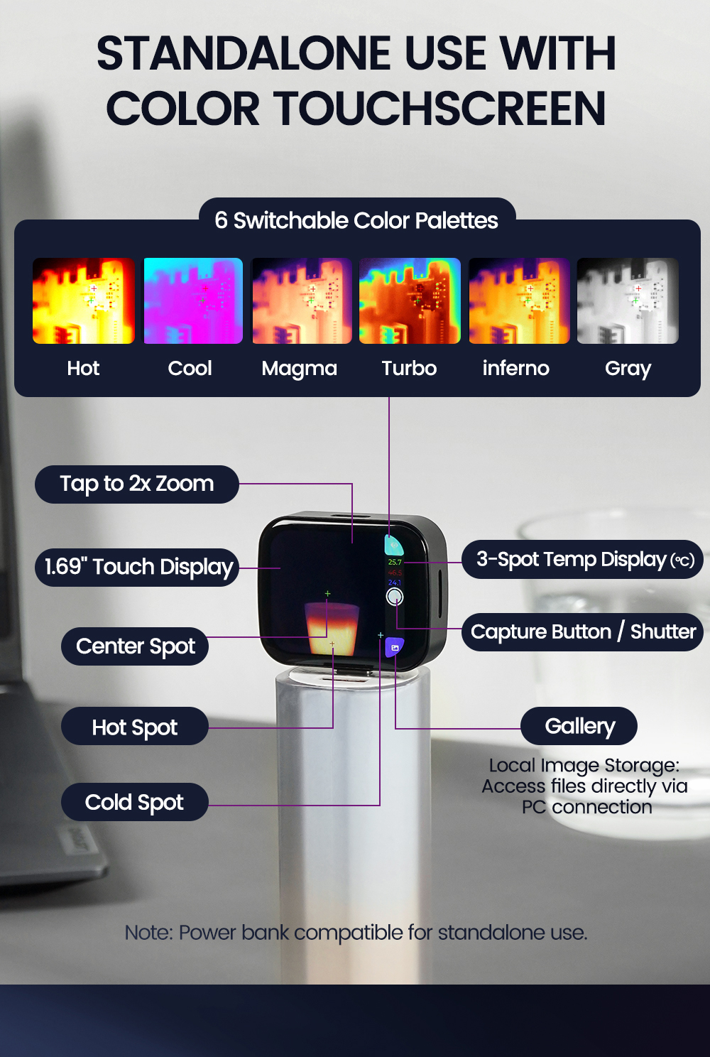 Sipeed T256s AI Thermal Camera - 256x192 IR Sensor with 640x480 AI Super-Resolution, Standalone Touchscreen Thermal Imager for Electronics Repair & Industrial Inspection