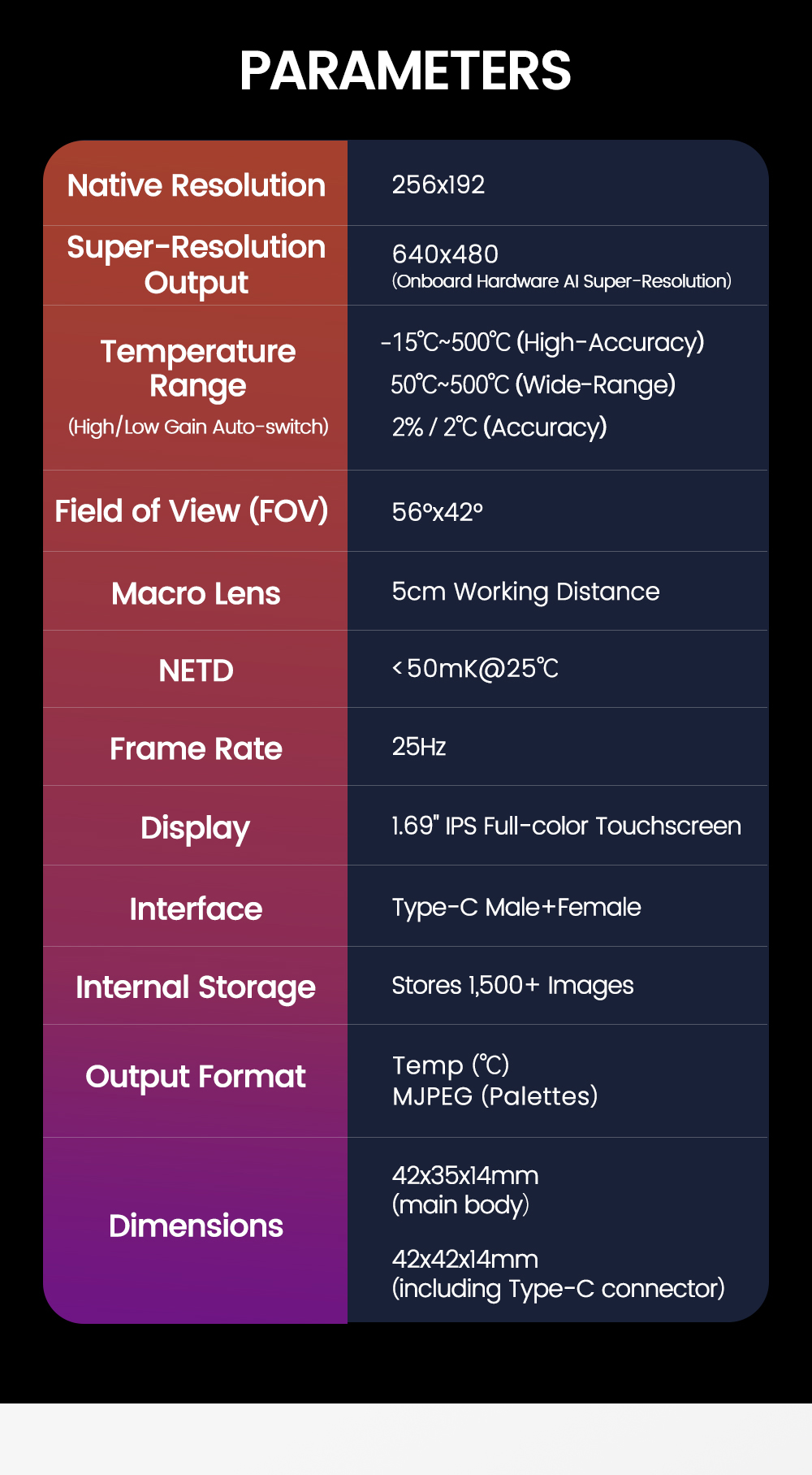 Performance: 25Hz smooth frame rate & <50mK sensitivity.