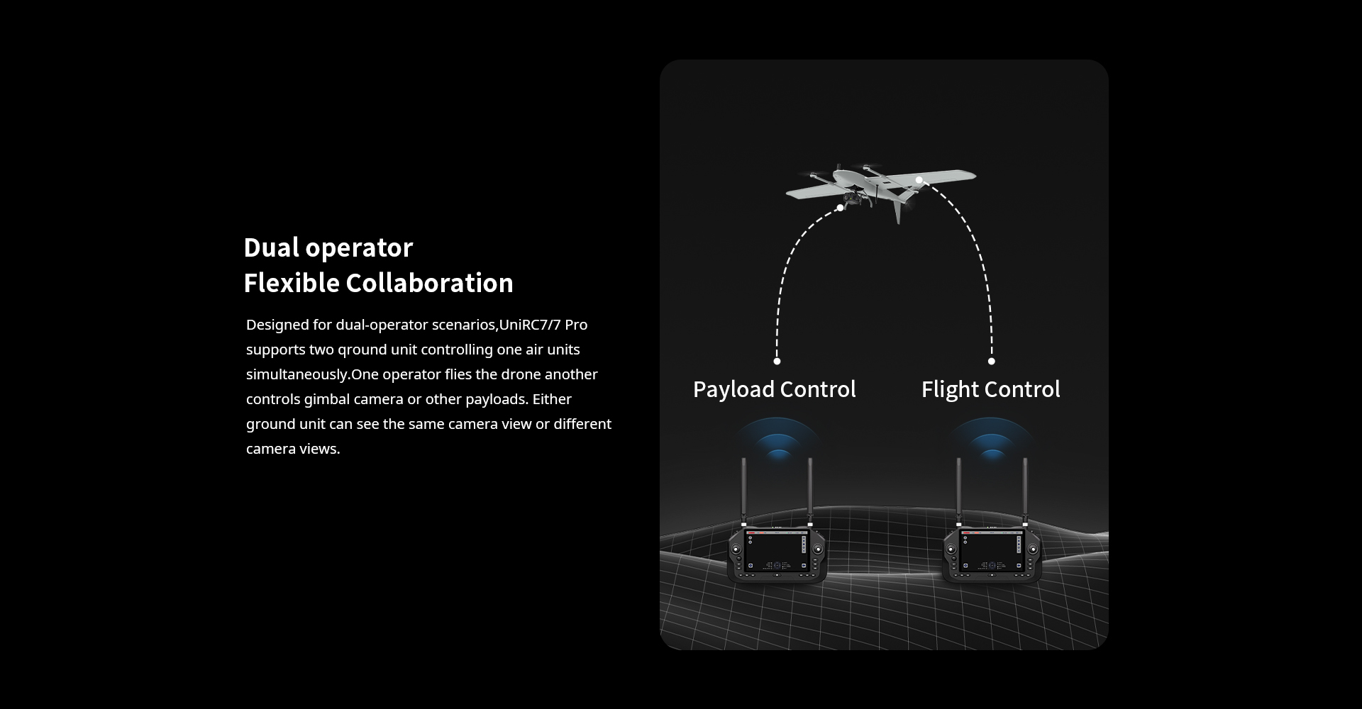 UniRC 7 Pro: 2 x Internal (5 GHz)+2 x External (2.4 GHz) UniRC 7: 2 x External (2.4 GHz) |