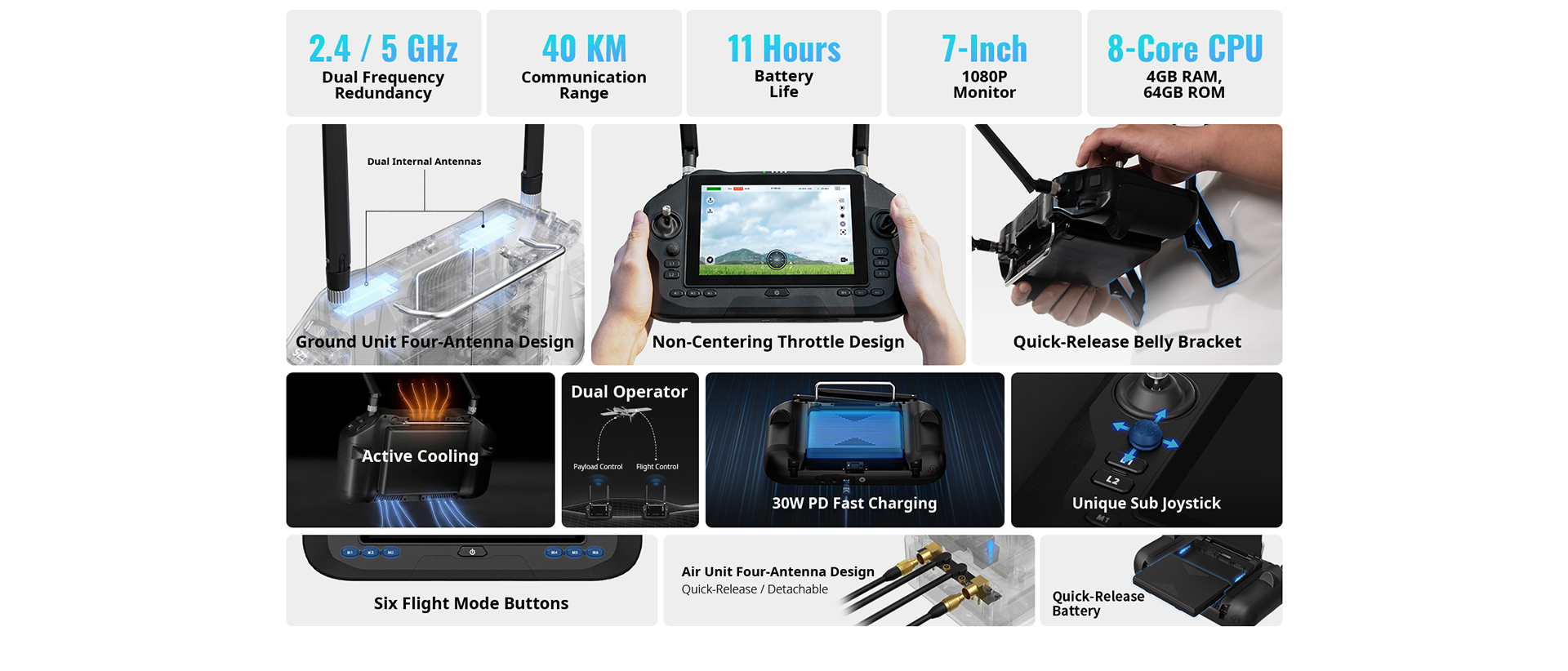 Meet the SIYI UniRC 7 Series—the all-in-one handheld ground station purpose-built for enterprise drones, UGVs and USVs. Combining a 40 km secure link, 4K video, and a sunlight-proof 7-inch screen in an IP54 body, it lets pilots fly farther, see clearer, and work longer without swapping gear. Android 13 inside means you can run QGroundControl, Mission Planner, or your own GCS software side-by-side with SIYI’s UniGCS app. From mapping farms to inspecting offshore rigs, UniRC 7 keeps professionals connected and in control.
