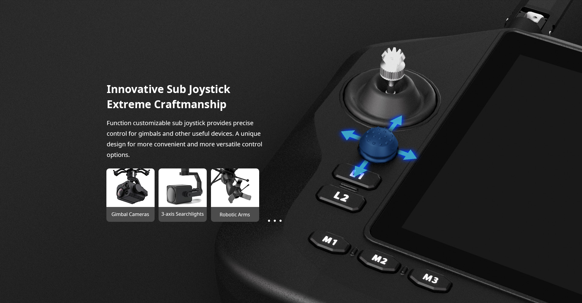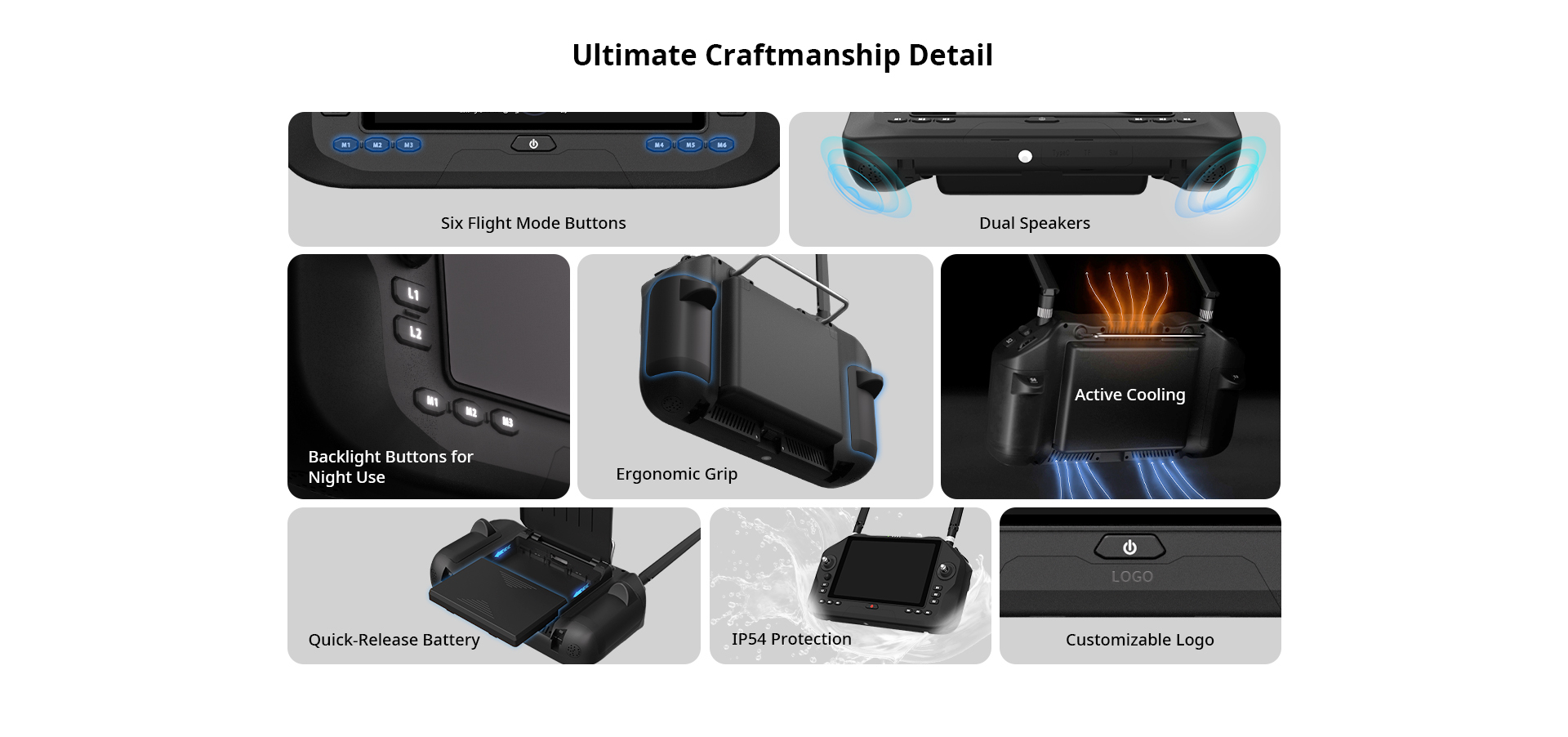 10 x Custom Buttons 6 x Flight Mode Buttons 2 x Main Joysticks 1 x Sub Joystick 2 x Dials 2 x 3-Stage Switches |