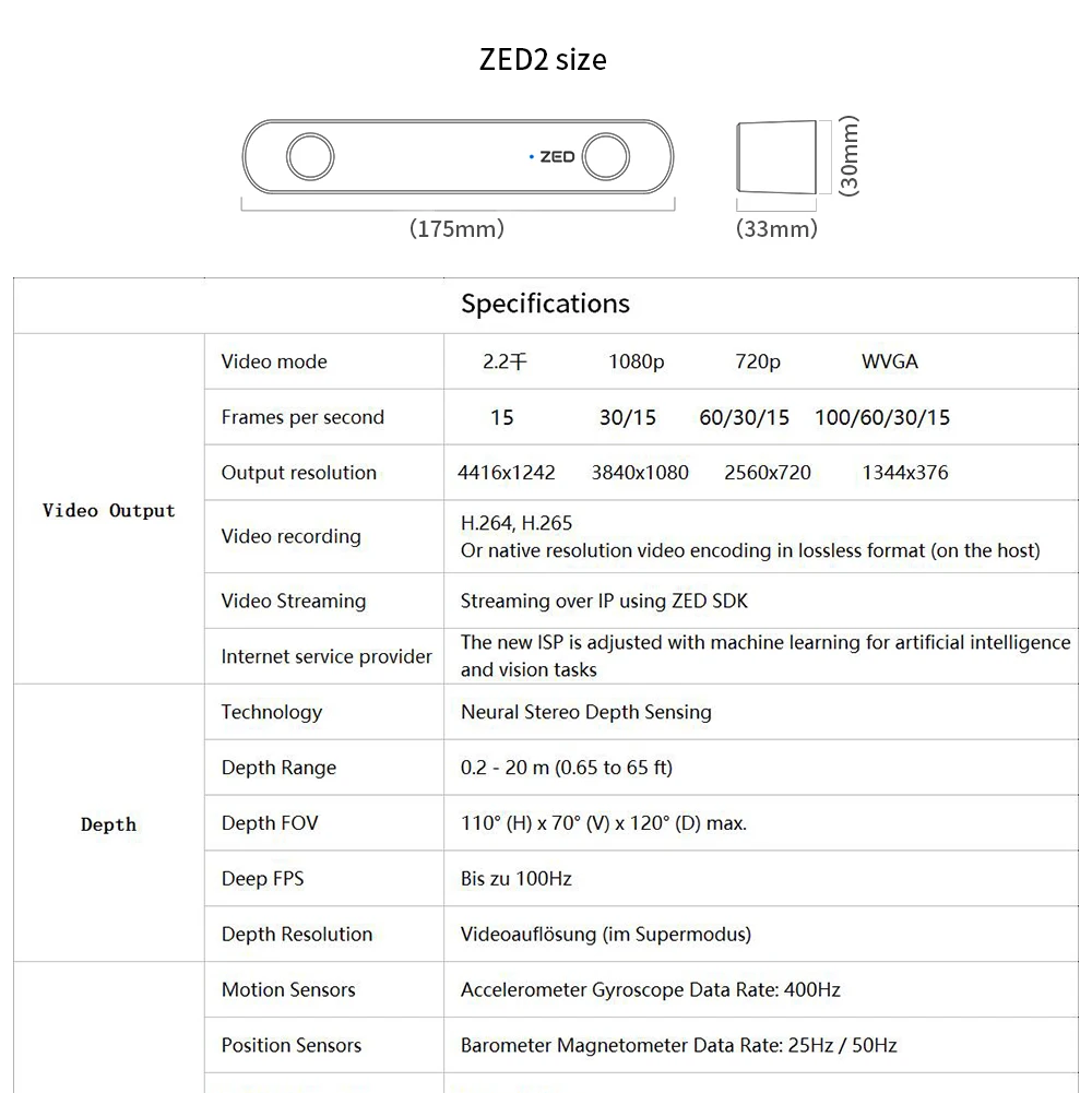 ZED 2 is the first stereo camera that uses neural networks to reproduce human vision, bringing stereo perception to a new level. Multi-sensor capture made easy. Gather real-time synchronized inertial, elevation and magnetic field data along image and dept
