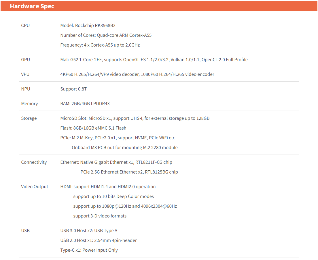 The NanoPi R5S has one M.2 NVME port, two USB 3.2 Gen 1 ports, and supports USB type-C power delivery. It is an ideal portable drive for saving images and videos.