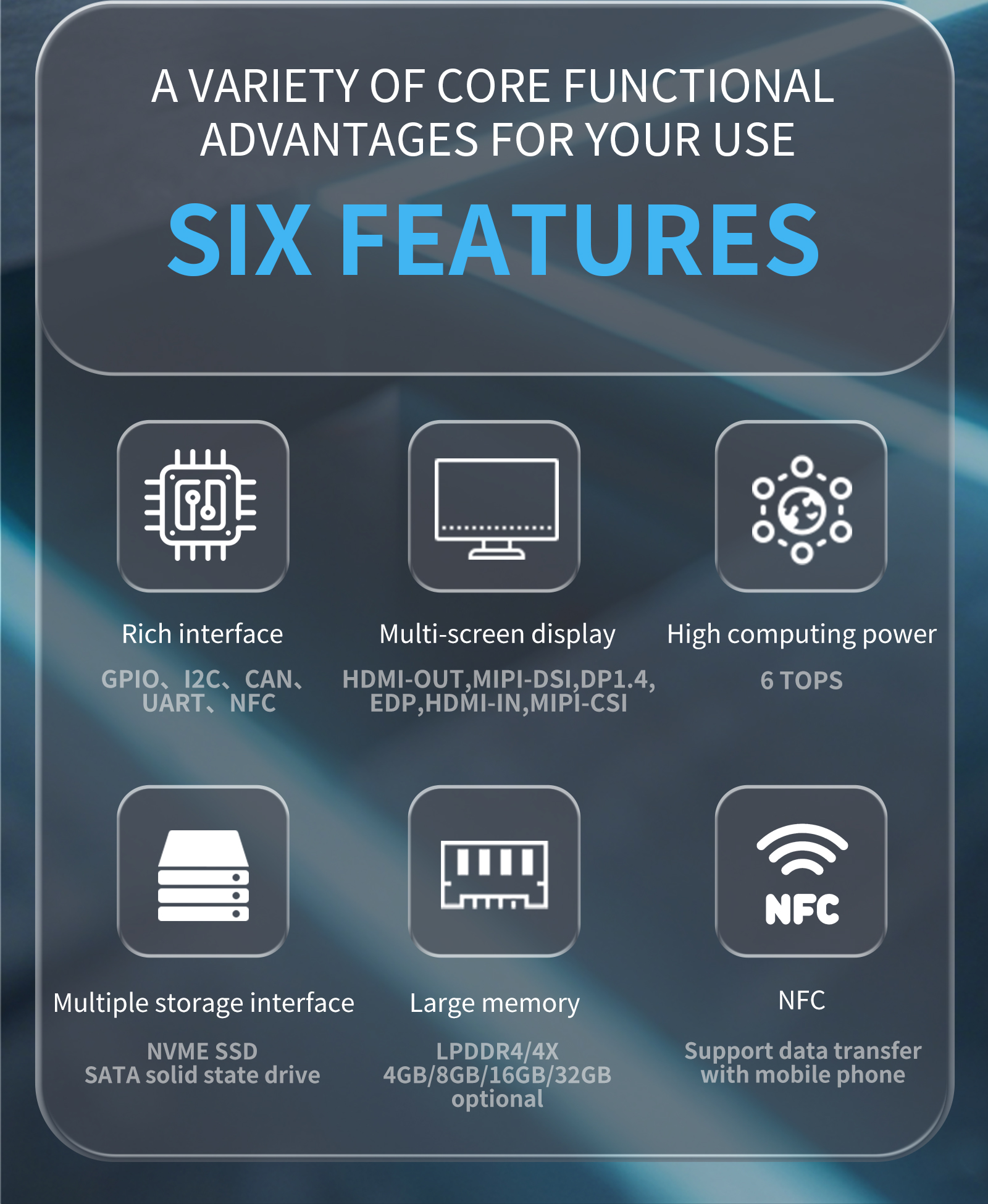 It is suitable for applications in industrial automation, edge AI, smart infrastructure, IoT gateways, and other fields, such as machine vision systems, robotics control, predictive maintenance, digital signage, interactive terminals, building automation, and multi-protocol edge nodes.